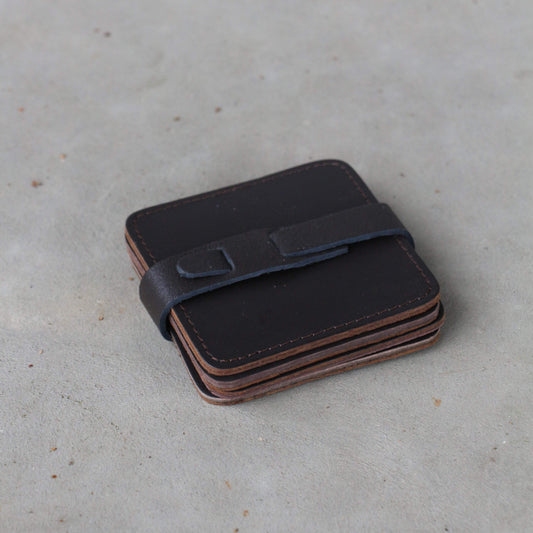 Coaster / Glasbrik Læder Sort - 4 stk.