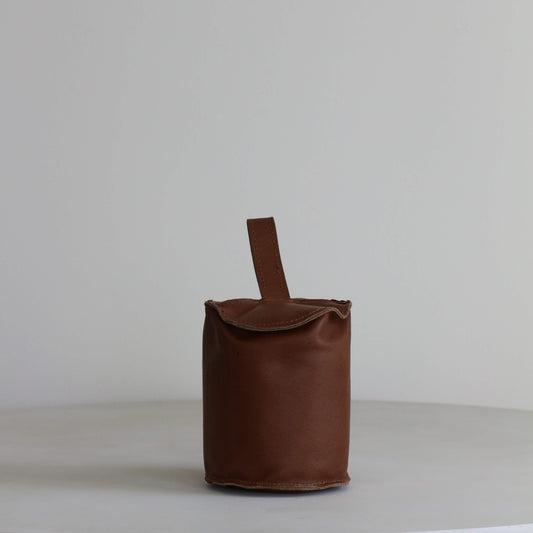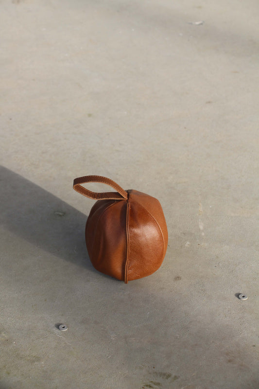Rund Dørstopper i Læder med Hank - Lysebrun