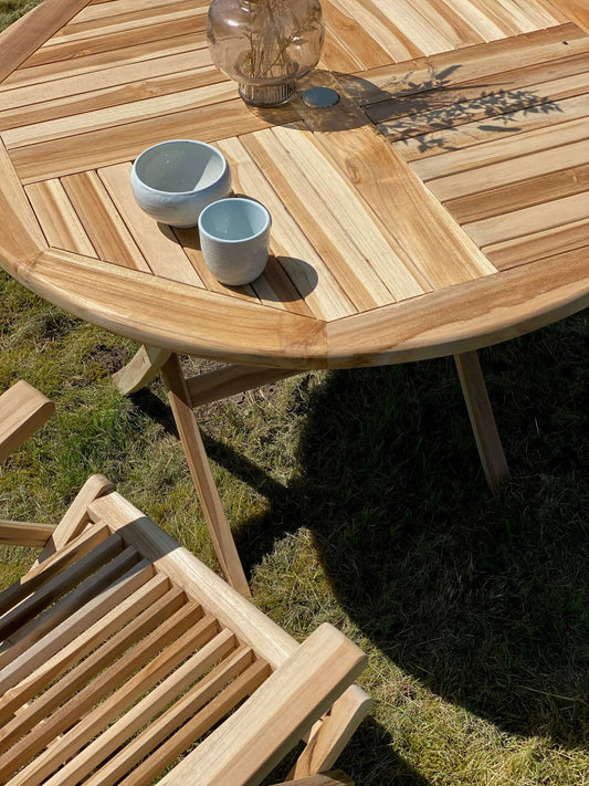 Eva Havebord i Teak med Hvidt Stel - Ø150 cm