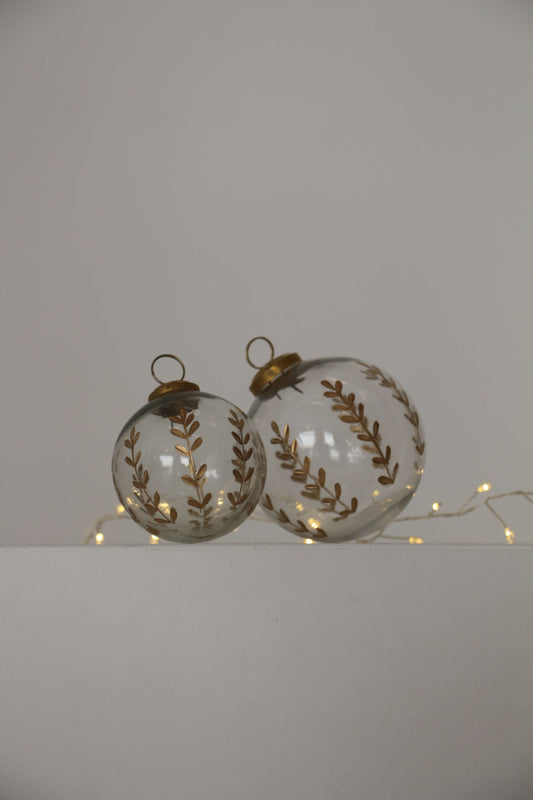 Julekugle i Rød med Blomstermønster - 4 stk.