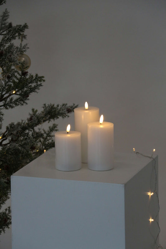 LED Bloklys Smal Støvet Grøn - 3 stk.
