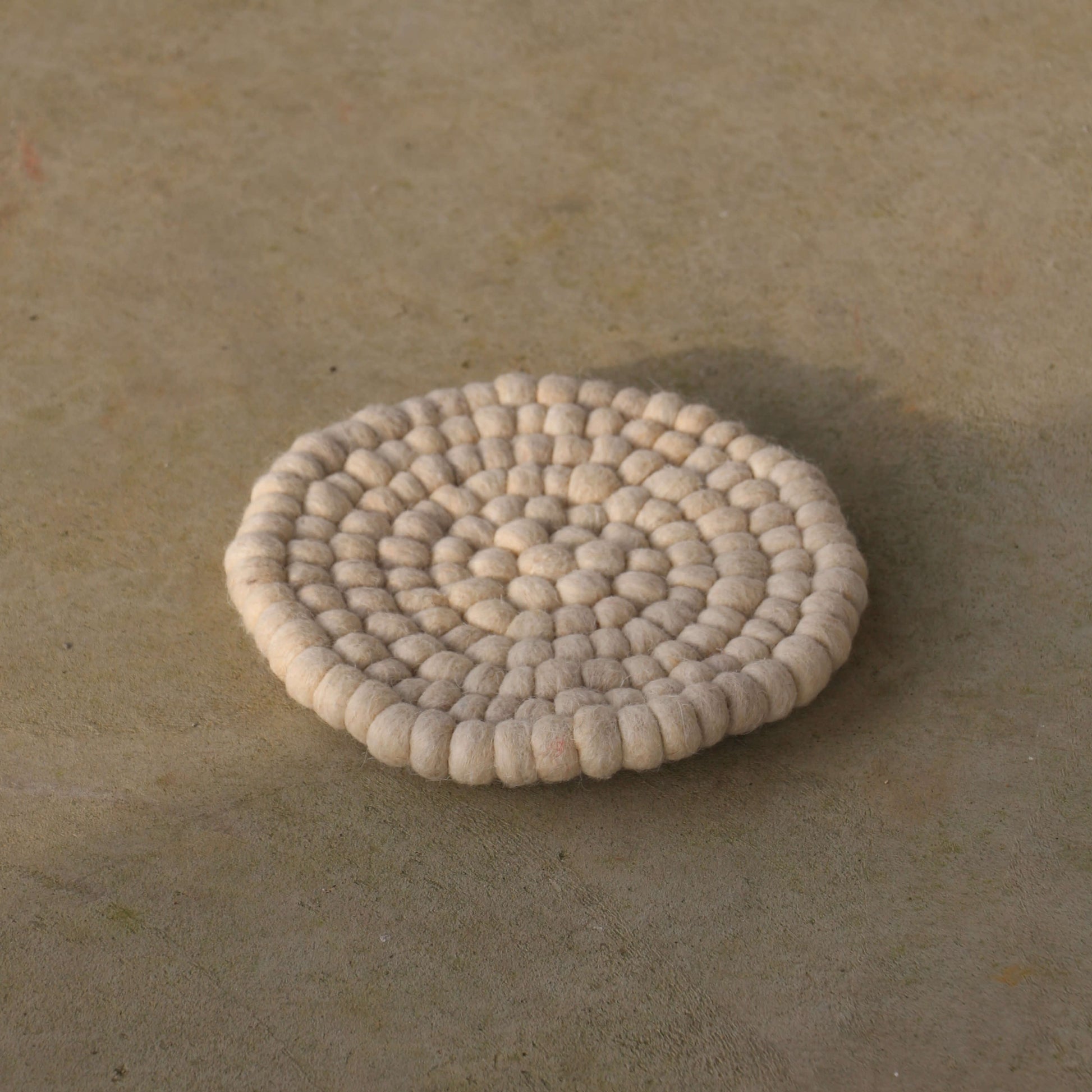 Sød, rund bordskåner i uld. Bordskåneren er håndlavet, så hver eneste er unik.