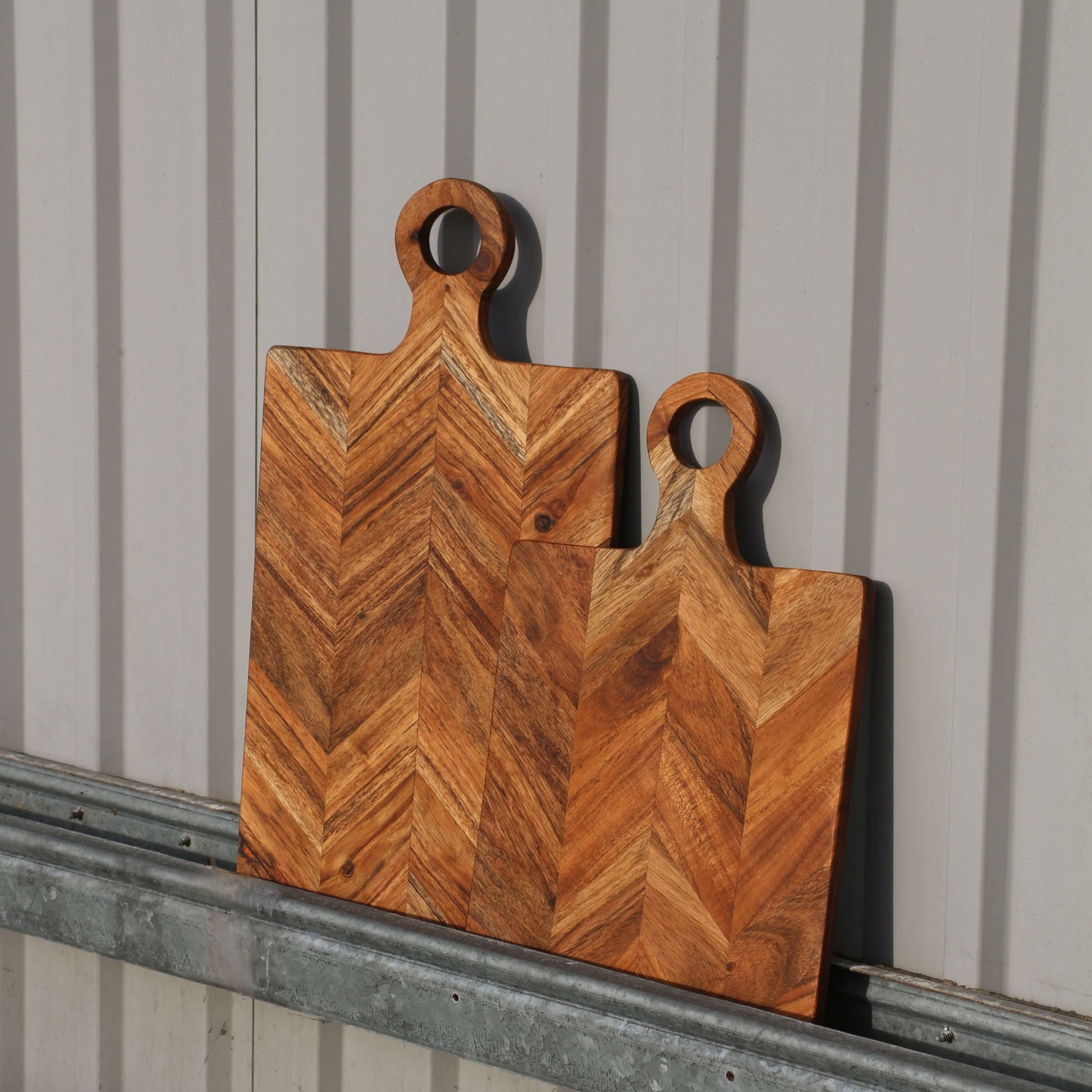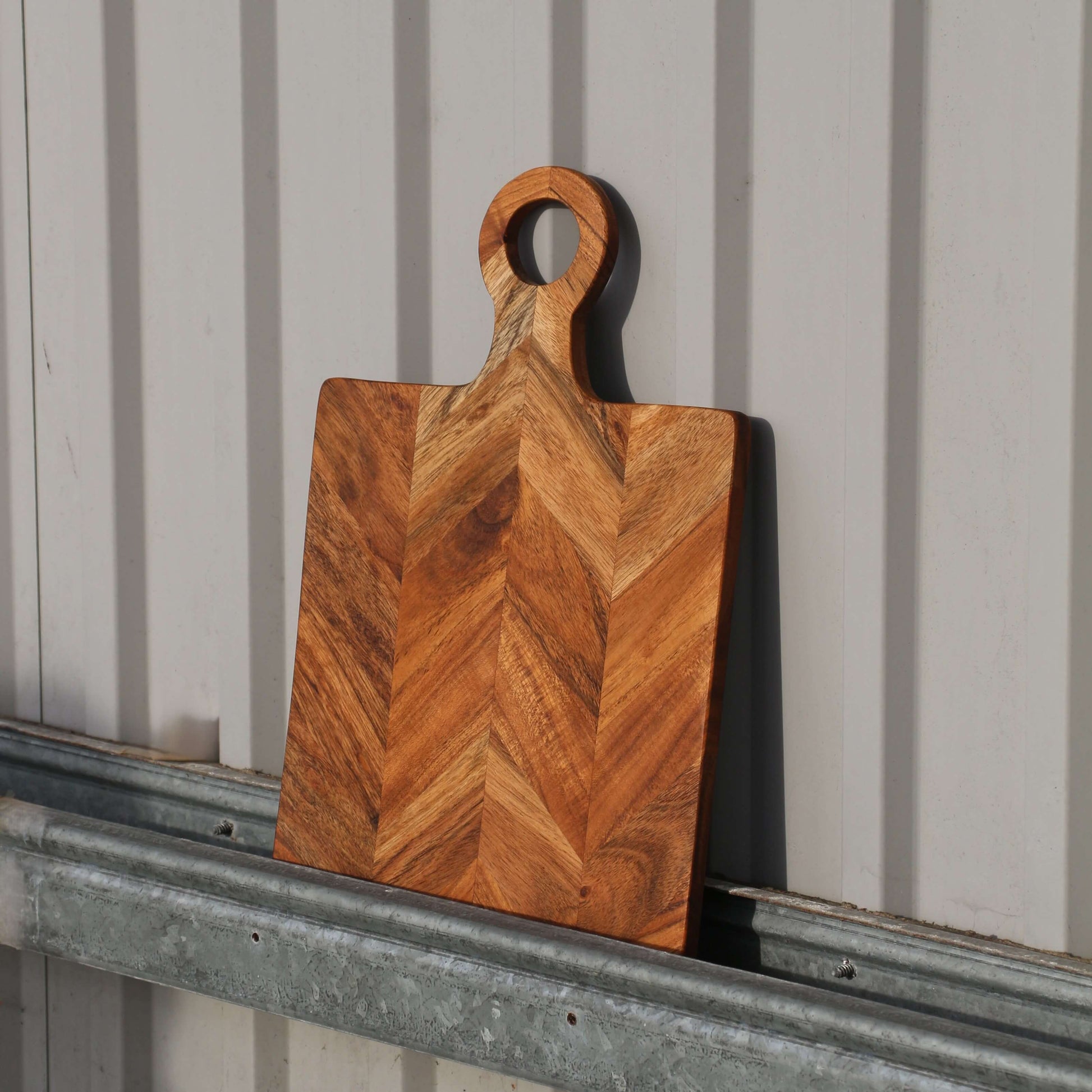 Smukt skærebræt i sildebensmønster. Kan bruges både som skærebræt og serveringsbræt / platte.